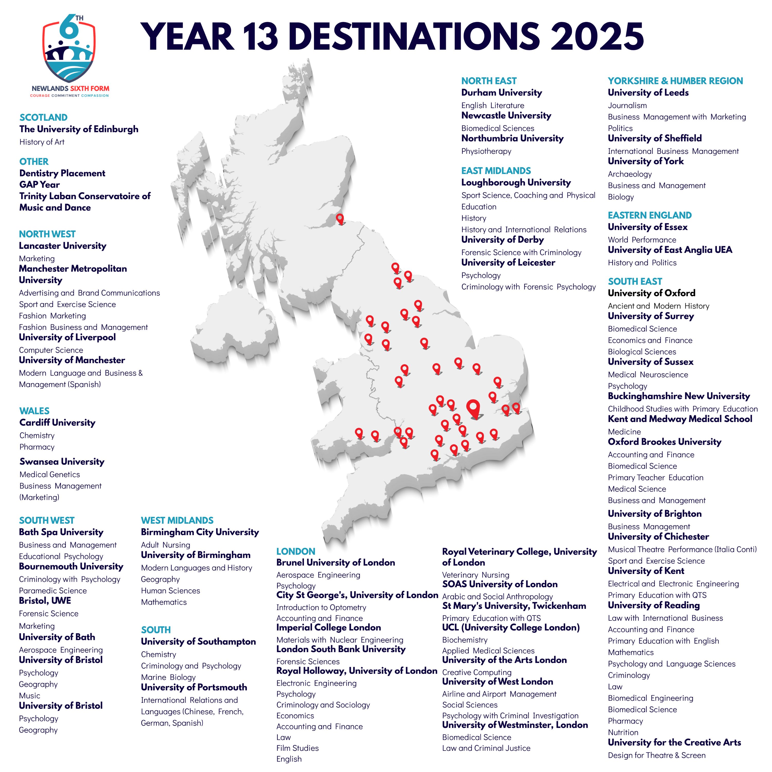 Newlands’ staff have many years’ experience of supporting students with their next steps, including to prestigious universities such as Oxford, Cambridge and the universities in the Russell Group as well as leading institutions in their field.